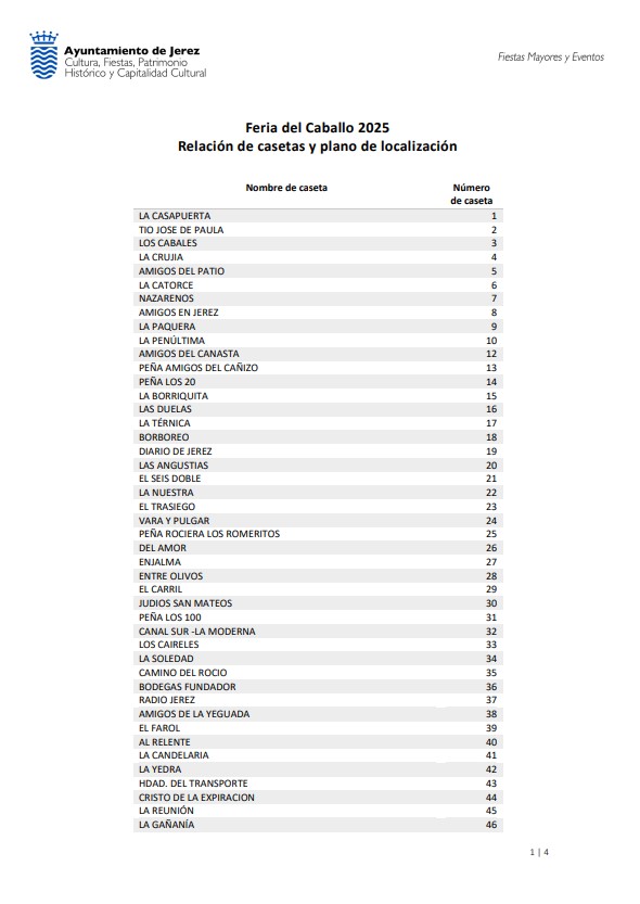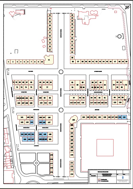 El plano determinado en esta fase del procedimiento recoge la distribución de las casetas conforme a la nueva Ordenanza Municipal, que establece dos categorías diferenciadas: casetas tradicionales y no tradicionales. Las casetas tradicionales destacan por su apuesta por el flamenco, la gastronomía y su vinculación con colectivos y asociaciones. Por su parte, las casetas no tradicionales, aunque sujetas a la normativa general, no priorizan estas características.