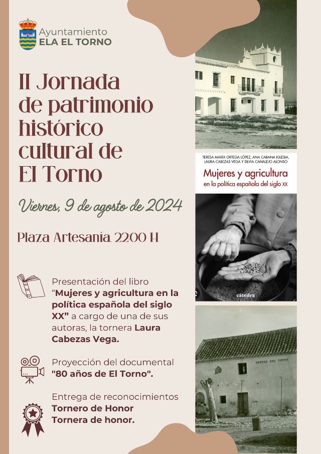 La entidad local de El Torno celebra el próximo viernes, 9 de agosto su II Jornada Local de Patrimonio Histórico Cultural, después de que el pasado verano celebrase con gran éxito la primera edición con el objetivo de reivindicar su singularidad en el 80 aniversario su creación.