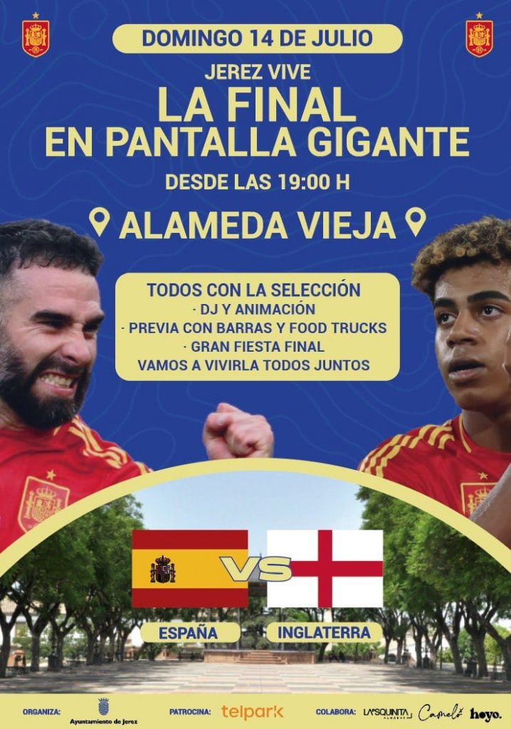 El Ayuntamiento de Jerez habilitará este domingo día 14 una pantalla en la Alameda Vieja para aquellos aficionados que quieran seguir la final de la Eurocopa 2024 que enfrentará a las selecciones nacionales de España e Inglaterra en el Olympiastadion de Berlín.