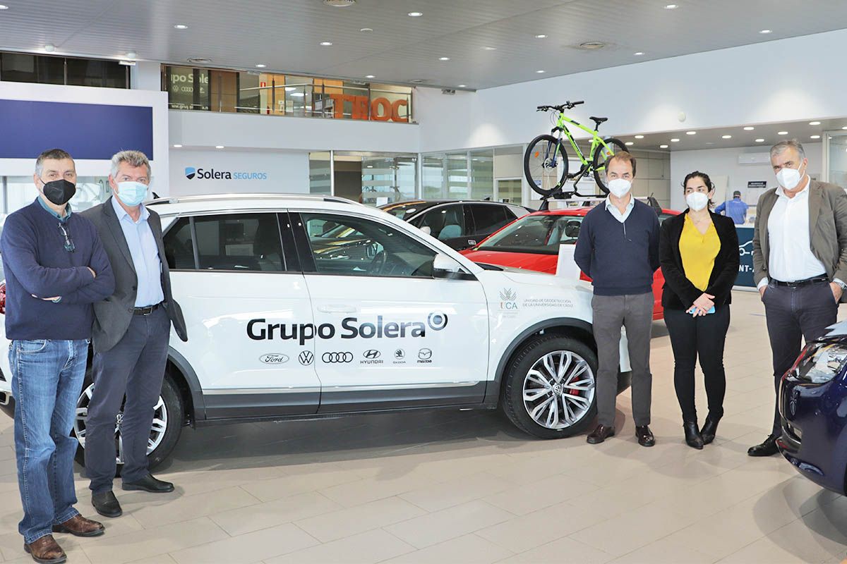 La firma se llevó a cabo en las instalaciones de Solera Motor, contando con la presencia, por parte de Grupo Solera; Jesús Ruiz, Director General, Lucía Delage, Directora Recursos Humanos, Francisco Fernández, Consejero, y por parte de la Unidad de Geodetección de la UCA los Profesores Doctores José Antonio Ruiz Gil y Lázaro Lagostena Barrios, Responsable de la Unidad.