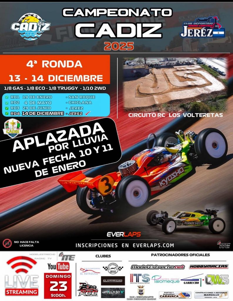 Esta prueba es el warm-up para la 1º prueba del campeonato RC CUP HUDY SERIES AECAR Andalucía 2026 que se va a celebrar el 31 de enero y el 1 de febrero.