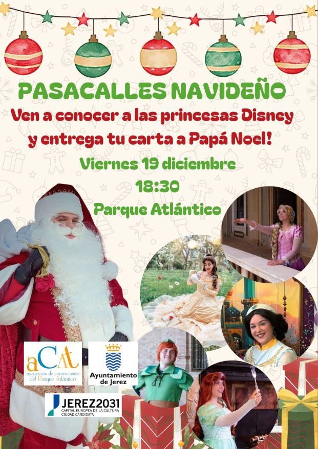 La barriada del Parque Atlántico recibirá el viernes una visita muy especial, el desfile de ‘Princesas Disney’ que recorrerá el entorno el próximo viernes, 19 de diciembre, a partir de las 18.30 horas, como han anunciado, el Ayuntamiento de Jerez, a través de la Delegación de Empleo, Comercio y Consumo, que dirige Nela García, y el presidente de la Asociación de Comerciantes del Parque Atlántico (ACAT), José Rodríguez.