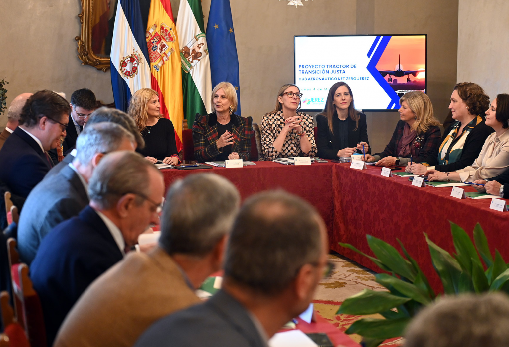 María José García-Pelayo ha recordado que a principios del pasado mes de marzo se celebró una importante reunión en el Ayuntamiento con la Junta de Andalucía (representada al más alto nivel por las viceconsejeras de Industria e Innovación, Ana Vielba y Lorena Garrido respectivamente) y empresas, entidades y asociaciones empresariales a las que se presentó el proyecto de Hub Aeronáutico “Net Zero Jerez”, proyecto con el que desde el Gobierno de García-Pelayo y de la Junta se impulsa un ecosistema industrial centrado en la aviación sostenible, nuevos combustibles y nuevos procesos para el MRO (Mantenimiento, Reparación y Operaciones en la industria aeronáutica).