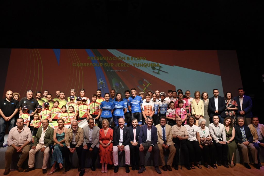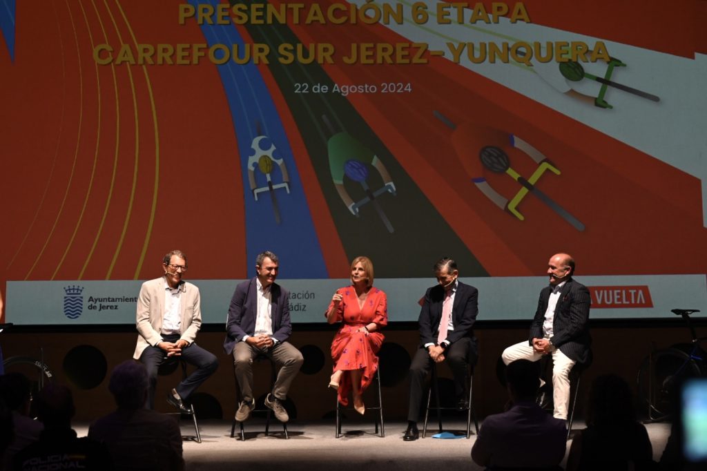 La alcaldesa de Jerez, María José García-Pelayo, acompañada de miembros del Gobierno municipal, y junto al vicepresidente primero de la Diputación Provincial de Cádiz, Juan José Ortiz; el director general de Unipublic, Javier Guillén; el director regional de Carrefour Andalucía, Emilio Muñoz, y el vicepresidente de la Federación Española de Ciclismo, Manuel Rodríguez, han presentado la sexta etapa de la Vuelta Ciclista a España, que partirá desde Jerez el día 22 de agosto.