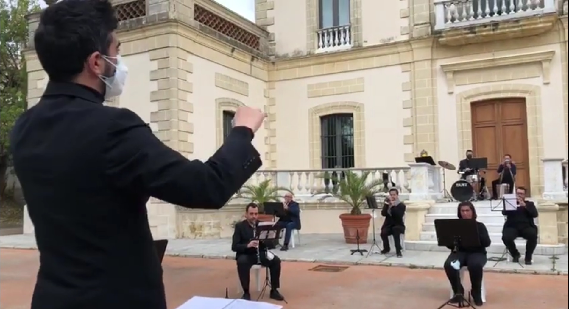 En estas semanas en las que la ciudad está en el grado 2 de la Fase 4, la Banda Municipal ha grabado parte de su repertorio a puerta cerrada en los jardines de los Museos de la Atalaya bajo la dirección de Luis Román Cárdenas.