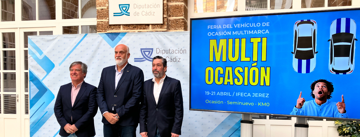 Las instalaciones de Ifeca en Jerez alojarán, del 19 al 21 de abril, la Feria Multiocasión. Esta exposición comercial se dedica a la compraventa de vehículos de ocasión y de kilómetro cero, aglutinando la oferta de establecimientos multimarca y de concesionarios de la provincia de Cádiz. Las personas interesadas en este salón podrán acceder a más de mil propuestas con “descuentos especiales”, según han manifestado Juan Duarte, de Automociona, y Carlos Landín, de Expoalia, en calidad de representantes de las firmas organizadoras. En representación de Diputación ha intervenido en la presentación de esta iniciativa el vicepresidente segundo Javier Vidal, quien ha valorado esta propuesta comercial, el dinamismo que Multiocasión proporciona a Ifeca y la solvencia de las firmas que promueven esta feria.