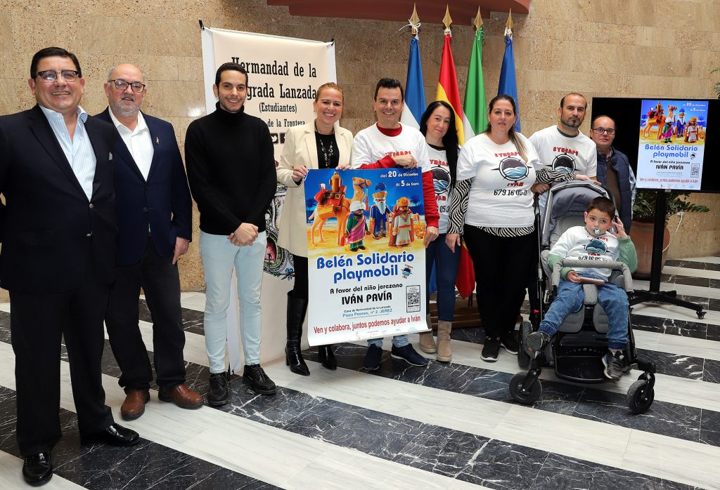 La delegada de Inclusión Social, Yessika Quintero, ha participado este miércoles en el Ayuntamiento en la presentación del cartel del Belén Playmobil que, con carácter benéfico, expondrán la Hermandad de La Lanzada y varias familias colaboradoras para cooperar económicamente con la familia de Iván Pavía Franco, que padece síndrome de Syngap 1.