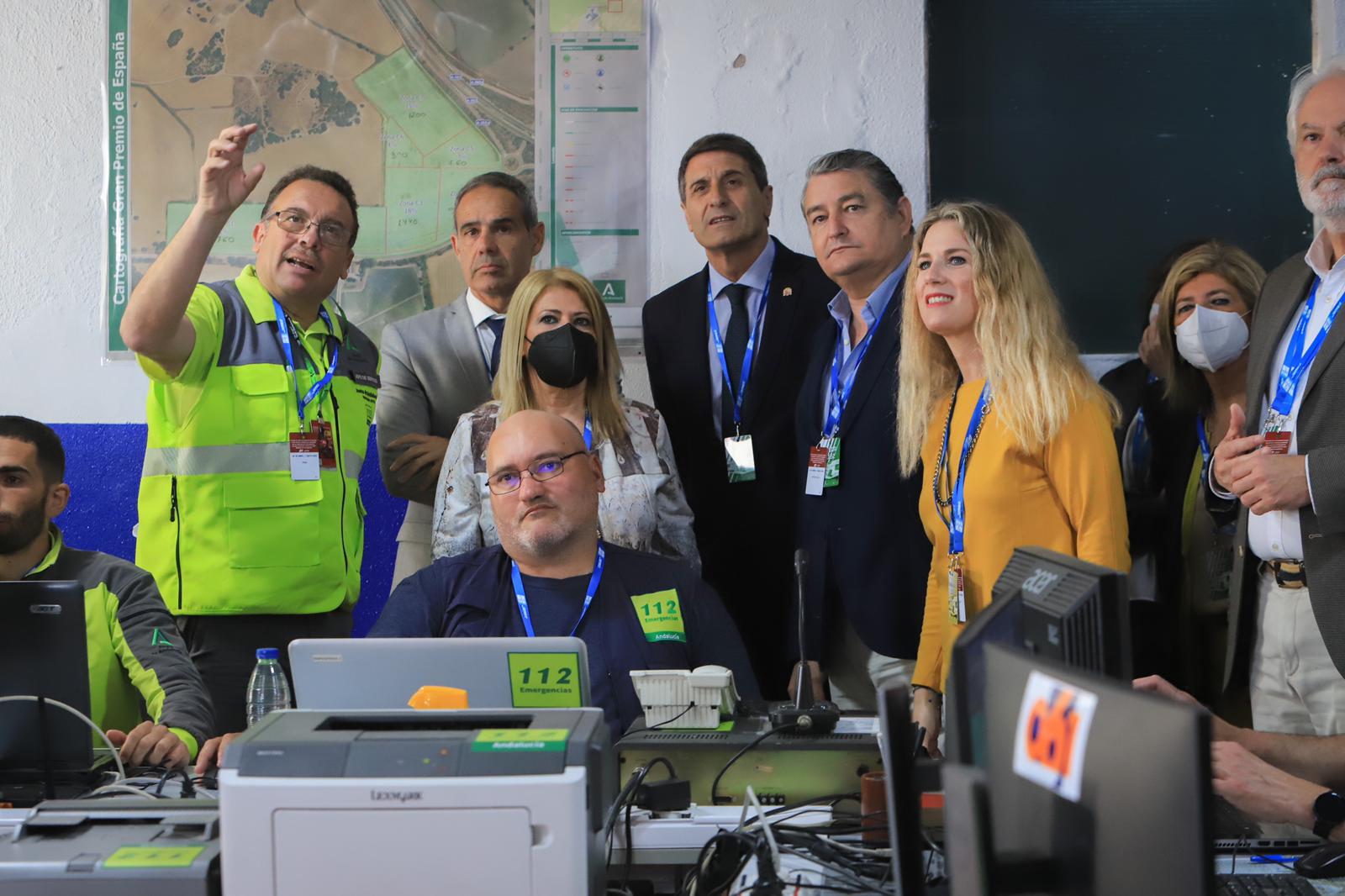 El viceconsejero de la Presidencia, Administración Pública e Interior de la Junta, Antonio Sanz, junto al delegado del Gobierno de Andalucía, Pedro Fernández,  la delegada del Gobierno de la Junta en Cádiz, Ana Mestre, el director general de Emergencias y Protección Civil, Agustín Muñoz, además del subdelegado del Gobierno en Cádiz, José Pacheco y  la alcaldesa de Jerez, María del Carmen Sánchez, ha acudido a primera hora de la mañana a la sala del Centro de Coordinación, situada en el circuito, para comprobar de primera mano la puesta en marcha y despliegue del operativo.