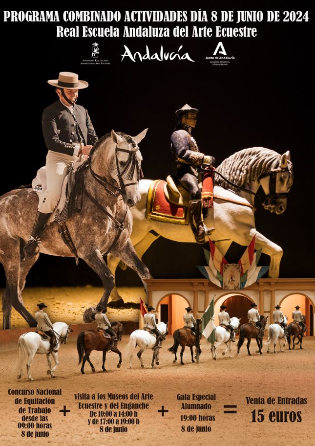 La Real Escuela Andaluza del Arte Ecuestre acogerá los días sábado 8 y domingo 9 de junio el Concurso Nacional de Equitación de Trabajo. Asimismo, coincidiendo con el campeonato, los alumnos ofrecerán una gala el sábado 8.