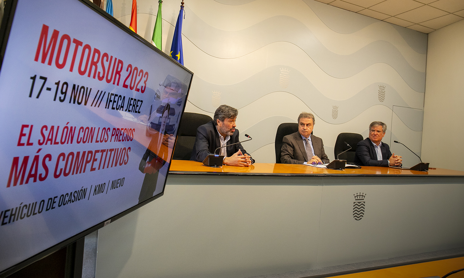 La presentación del evento también contó con la presencia de Carlos Landín y Juan Ángel Duarte, responsables de las empresas organizadoras del evento, Expoalia y Automociona respectivamente. Ambos tuvieron palabras de agradecimiento tanto para las instituciones, Ayuntamiento de Jerez y Diputación de Cádiz, como para los concesionarios de la provincia, que un año más se han volcado para que MOTOSUR celebre “una edición histórica”. Y es que Landín resalta que “nunca se ha disfrutado en IFECA de un número de marcas tan elevado. Serán más de 40 firmas de automóviles. Venimos de un par de años complicados por la pandemia y la crisis de los chips. El mercado ha estado en momentos realmente complicados. Ahora pasamos a una situación diferente y las marcas se han recuperado. Por suerte, ya no hay que esperar tanto tiempo para las entregas de los coches y esto se va a notar en MOTORSUR”.