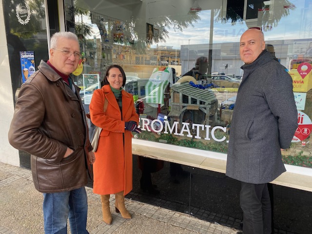 La delegada de Empleo, Trabajo Autónomo, Comercio y Empresa, Nela García, ha visitado la ruta de dioramas ‘Belensur 2023’, organizada por la Asociación de Comerciantes Adecosur en distintos establecimientos de la avenida Puertas del Sur.