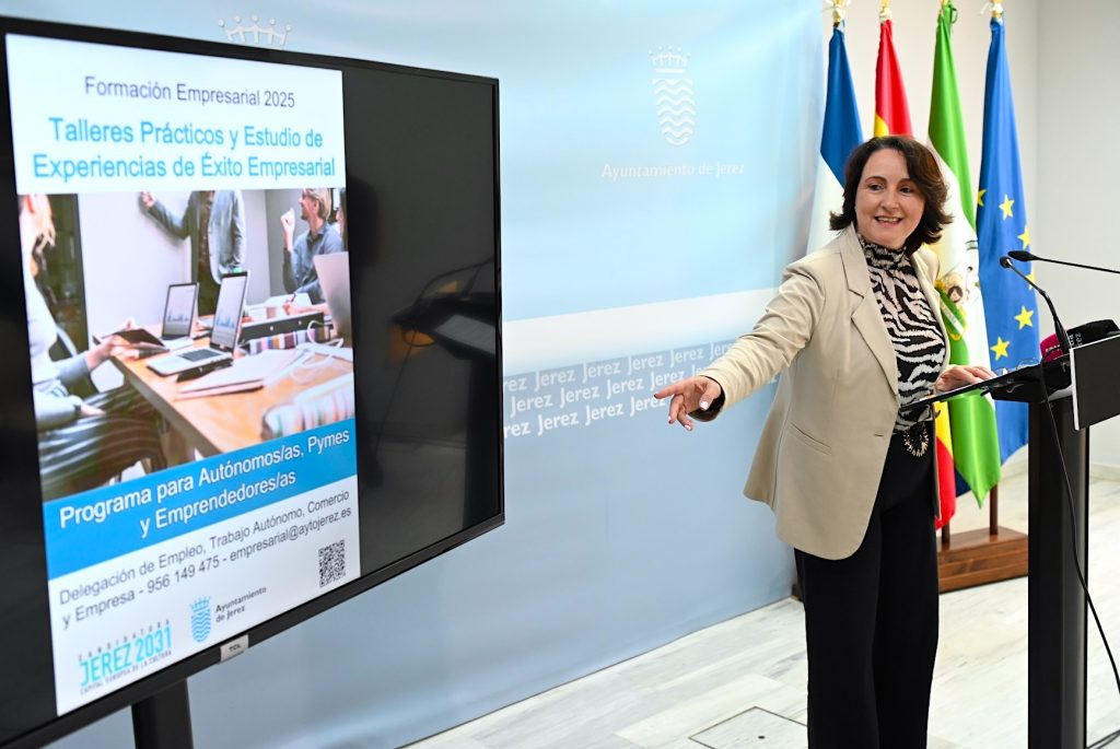 “Se trata de un ciclo enfocado a dar herramientas y ayudas en la formación continua del tejido empresarial de Jerez, canalizada a las 5.873 empresas y 11.067 autónomos registrados en la ciudad a finales de 2024 a quienes van dirigidas estas jornadas y talleres”, ha afirmado Nela García.