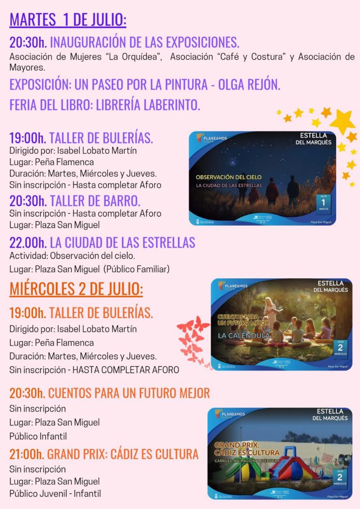 Exposiciones, Teatro, Gastronomía, Actividades Infantiles, Música,…..