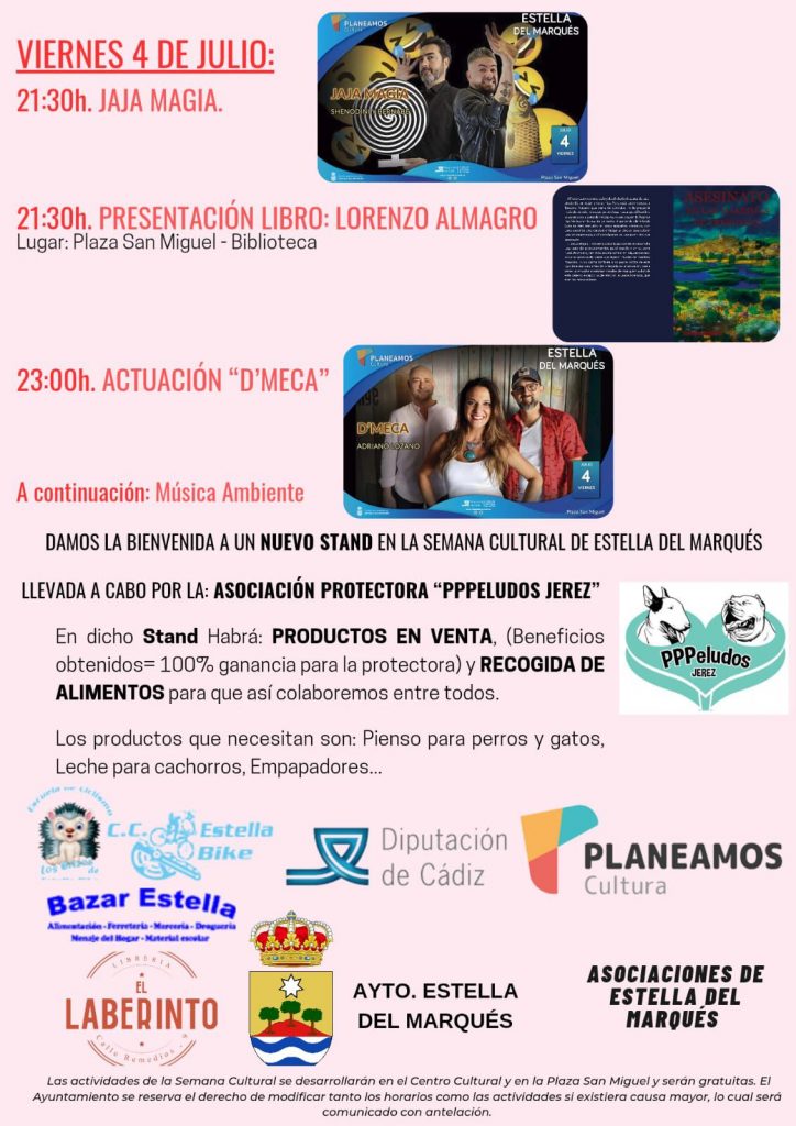 DAMOS LA BIENVENIDA A UN NUEVO STAND EN LA SEMANA CULTURAL DE ESTELLA DEL MARQUÉS LLEVADA A CABO POR LA: ASOCIACIÓN PROTECTORA “PPPELUDOS JEREZ”