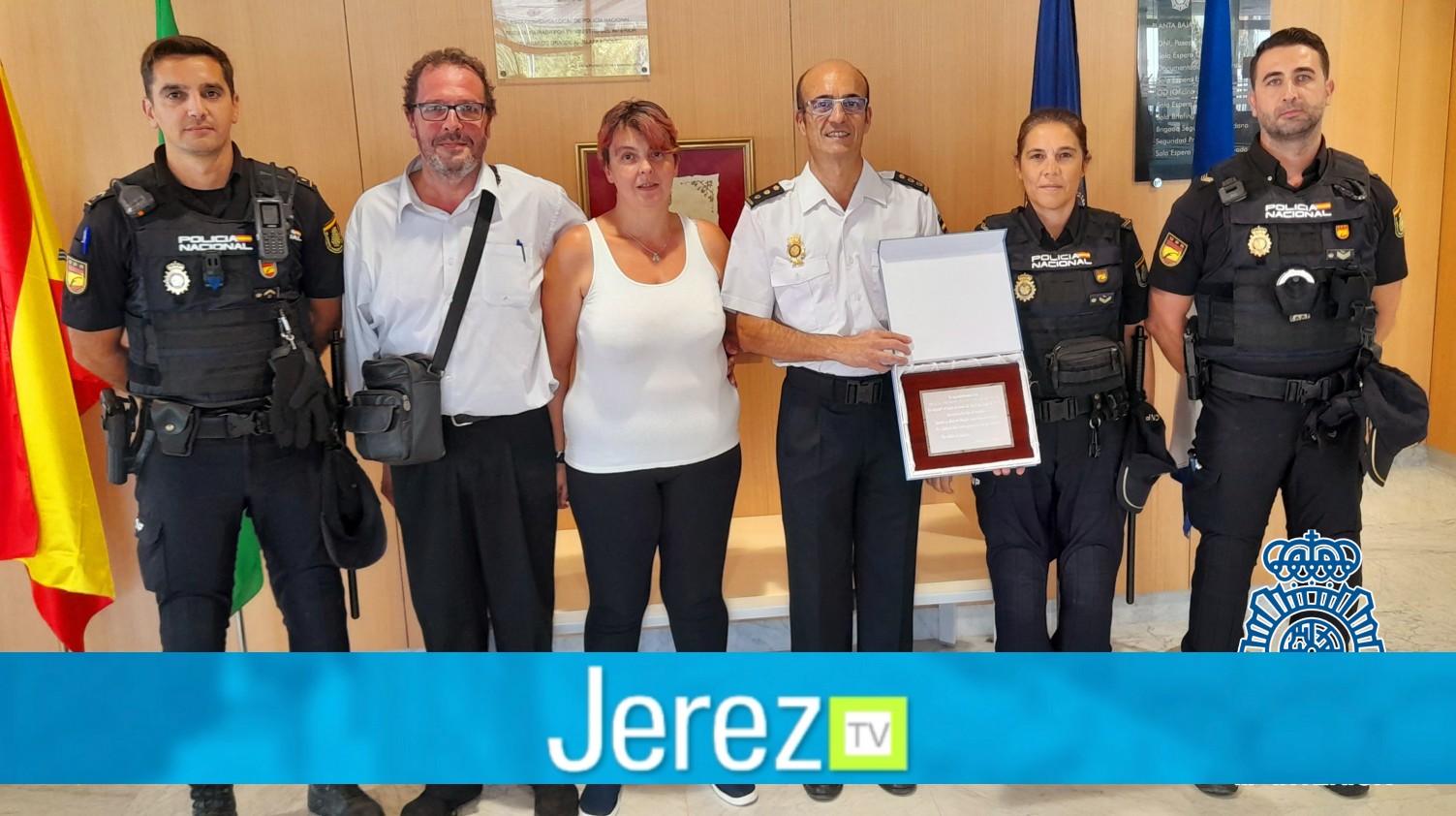 Gracias a la rápida actuación de la Policía Nacional el pequeño se encuentra totalmente recuperado y los abuelos han querido acercarse hasta la Comisaría de Jerez, con el objetivo de entregar una placa de reconocimiento y saludar a los agentes actuantes, miembros de la unidad UPR de la Policía Nacional en la ciudad, la misma ha sido recibida por el Comisario Jefe, D. Francisco García Carrasco, en compañía de los intervinientes, quién ha agradecido el gesto a los afectados y los ha felicitado por el feliz desenlace debido a la rápida y acertada actuación de los agentes.