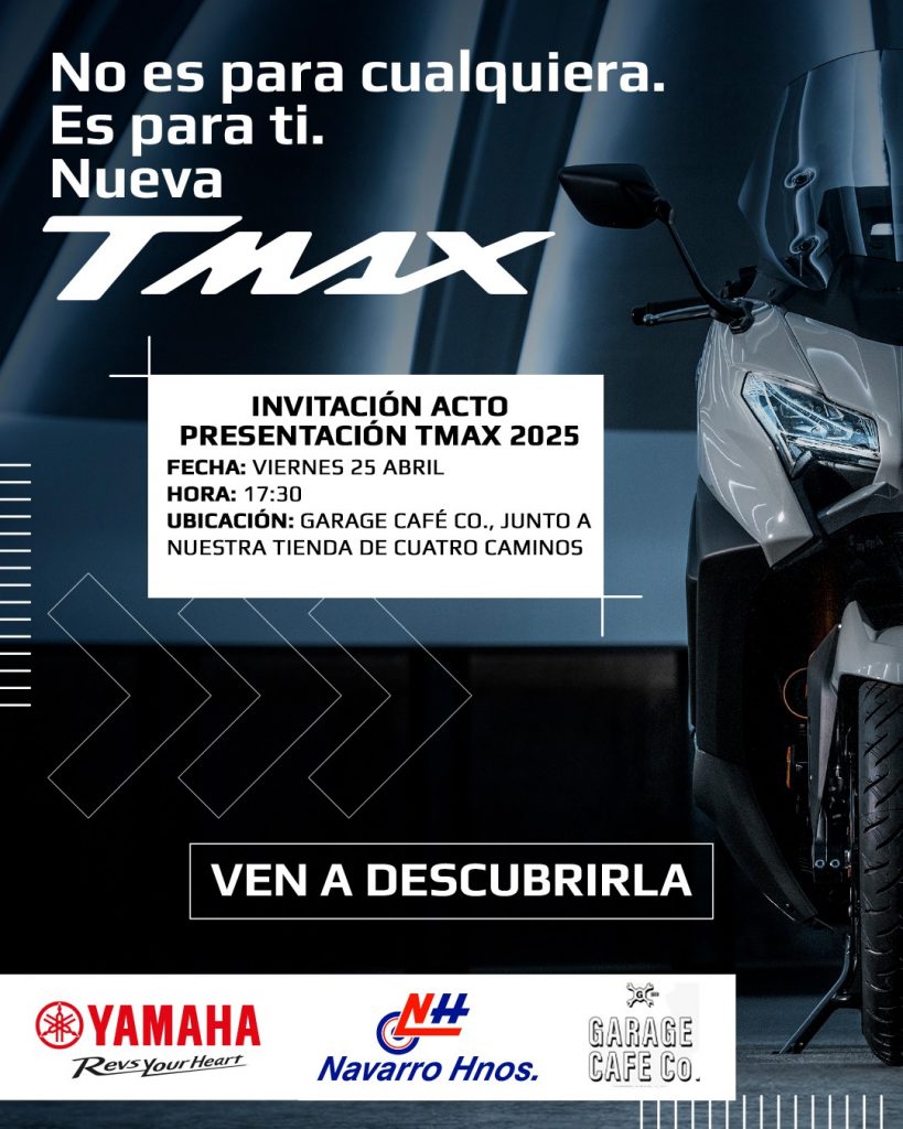 Navarro Hermanos en Jerez presenta este viernes 25 de abril la nueva Yamaha TMAX 2025. Será en las instalaciones de «Garage Café Co.» junto a la tienda de Navarro Hermanos en Cuatro Caminos. Se ha preparado un gran acto abierto al público hasta completar aforo donde habrá regalos entre los asistentes y al que se han invitado a clientes, responsables de la marca y colectivos relacionados con el mundo del motor y las dos ruedas.
